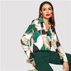 Multicolor Equestrian Print V-neck Collar Satin Top